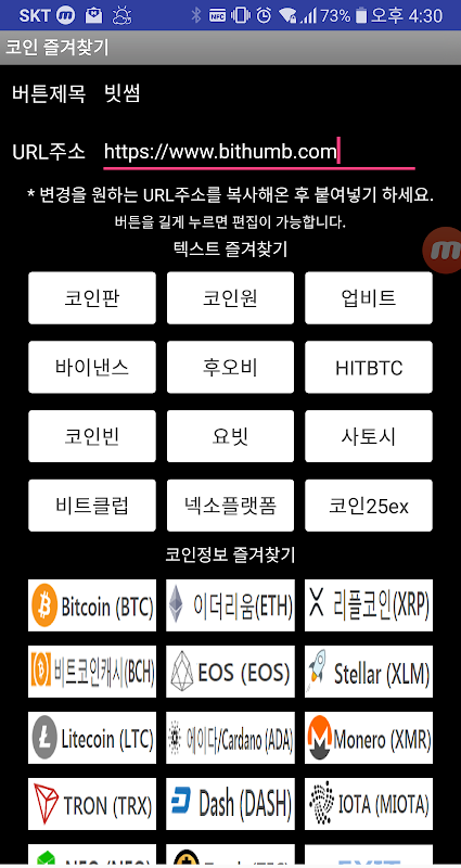 सिक्का पसंदीदा ऐप (एंड्रॉइड ऐप)। शॉर्टकट बटन दबाकर और दबाकर आप वांछित साइट पते टाइप करके इसे संपादित कर सकते हैं। 25 प्रमुख सिक्कों (बिट सिक्का, बिट सिक्का कैश, रेवेन, गोलेम, नेक्सो, नेवेली, रिवेट, पॉलिमस, रिपल इत्यादि) की सिक्का-गीको साइट पर जाने के लिए सिक्का जानकारी बटन स्पर्श करें।
