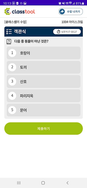 जब कोई शिक्षक शिक्षक वेब पेज (https://ctool.co.kr) पर एक कक्षा खोलता है, तो छात्र छात्र एप्लिकेशन के माध्यम से शिक्षक द्वारा निर्दिष्ट कक्षा कोड, संख्या और नाम का उपयोग करके कक्षा में भाग ले सकते हैं।