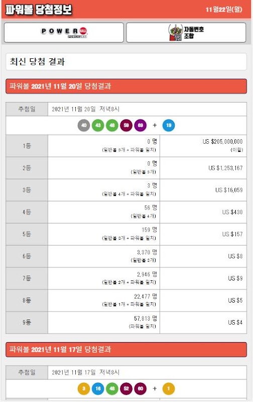 파워볼 당첨 결과 정보를 제공하는 무료 어플 입니다.