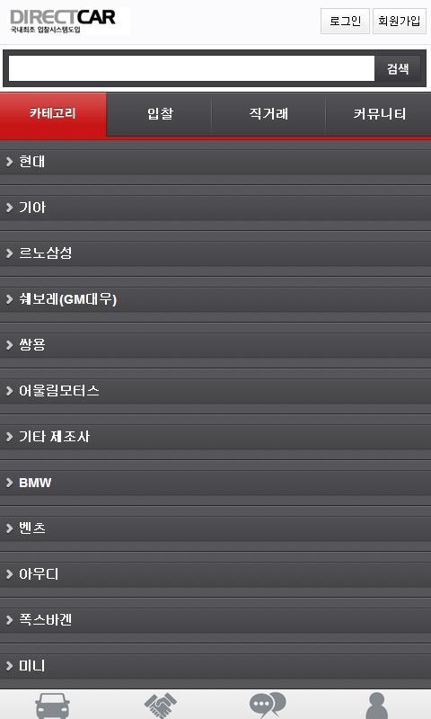 어플은 개인들이 보유하고 있는 중고차량을 개인간 직거래 또는 딜러입찰시스템등을 통하여
