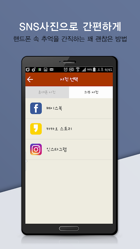 기기 사진 미디어 파일 엑세스 권한으로 사진의 섬네일을 생성하고 편집 데이터를 저장하기 위해 사용합니다.