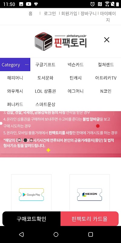 कोरिया के प्रमुख ऑनलाइन पिन विक्रेता पिन फैक्टरी विभिन्न मोबाइल, ऑनलाइन गेम भुगतान वाउचर, खाता स्थानांतरण, क्रेडिट कार्ड भुगतान