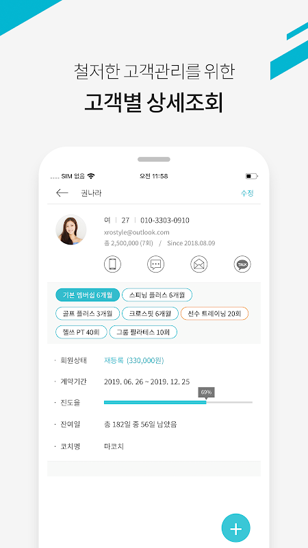 - 수강시간에 회원의 운동하는 사진을 찍어서 자세 등에 간한 코멘트를