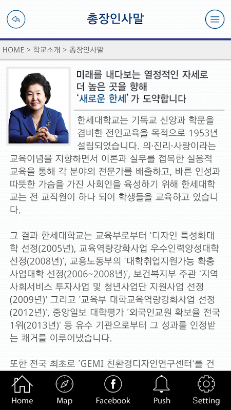 본 어플리케이션은 학교소개, 입학안내, 대학생활 등 모든 사람이 볼 수 있는 정보와