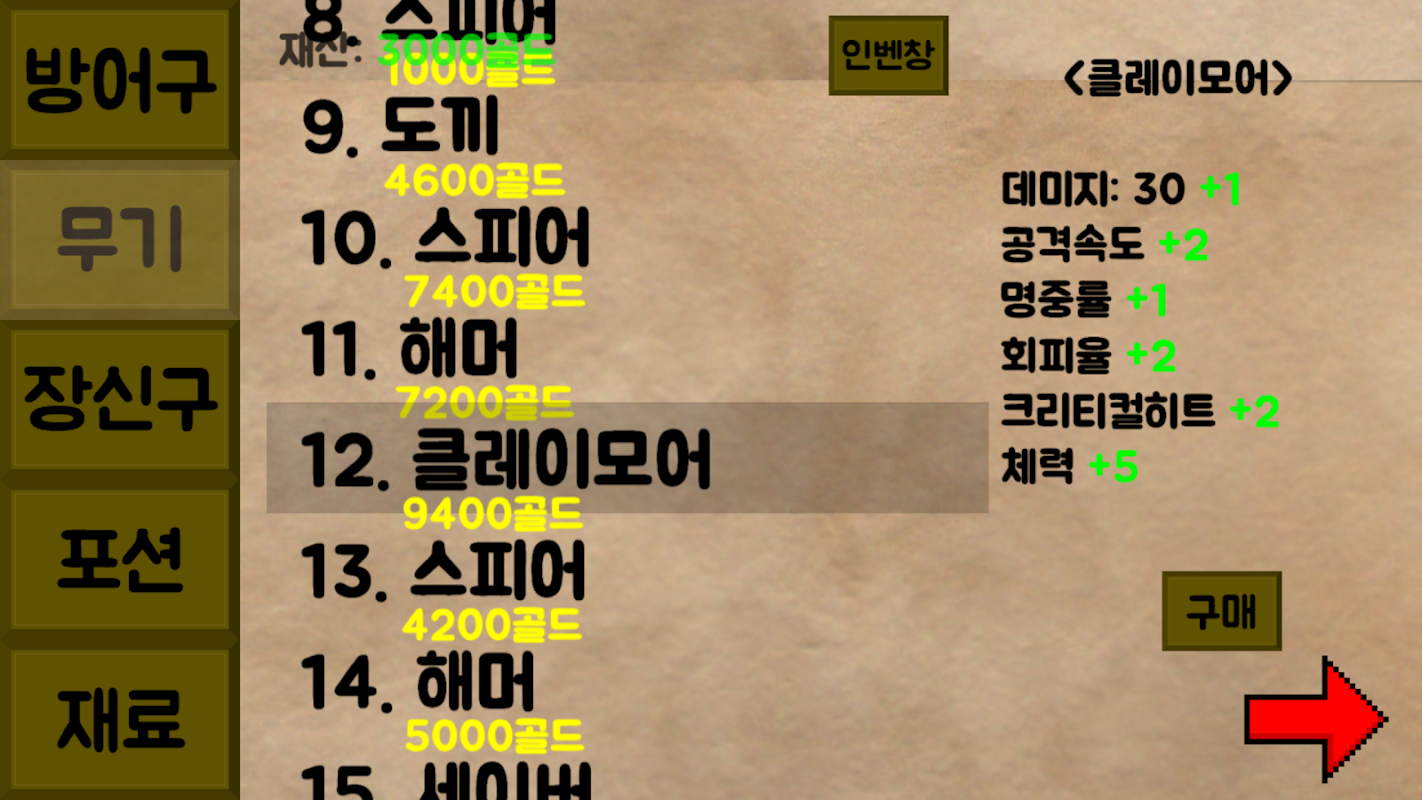 다양한 아이템과 능력치들!