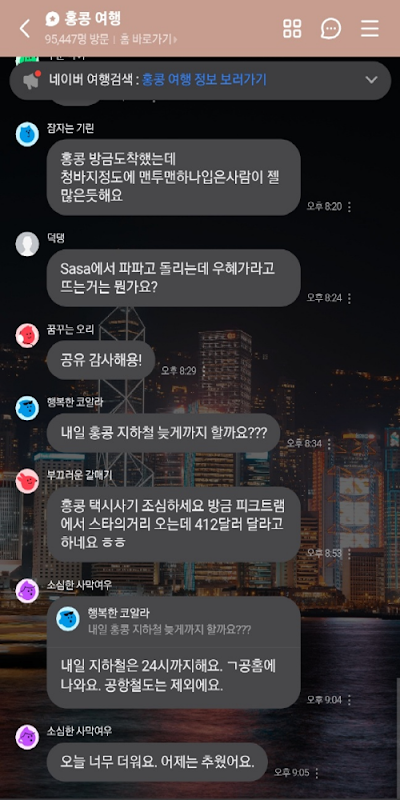Travel information sharing open chat, Naver Open Talk shortcut app.