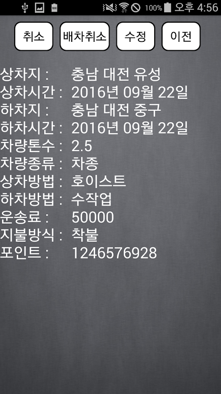 (주)한국머털테크의 화물앱넷 거래처용앱 입니다.