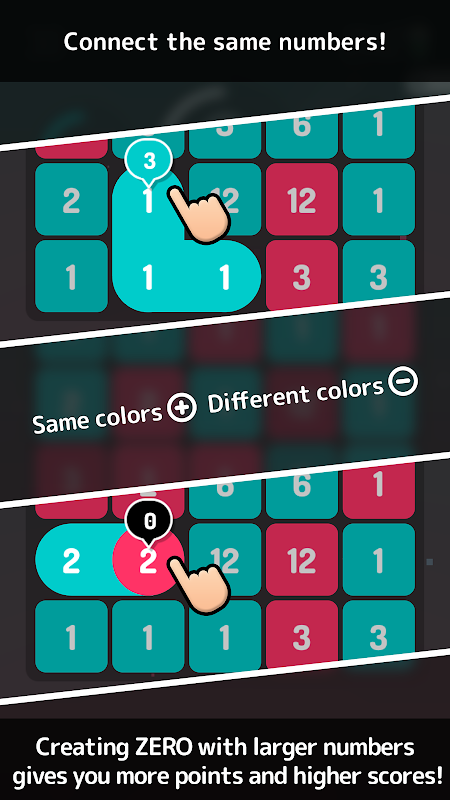 यदि टाइलें एक ही रंग की हैं, तो संख्याएँ जोड़ी जाती हैं।