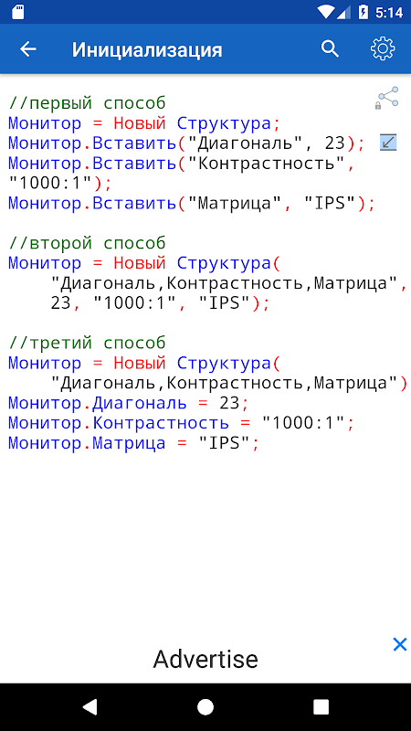 कार्यक्रम ने पुस्तकों और विशेष इंटरनेट संसाधनों से सर्वश्रेष्ठ कोड उदाहरणों का चयन किया है। इंटरनेट पर सबसे अच्छा समाधान खोजने में घंटों काम करने का समय लग सकता है। आवेदन में कोड के तैयार और सिद्ध "व्यंजनों" शामिल हैं।