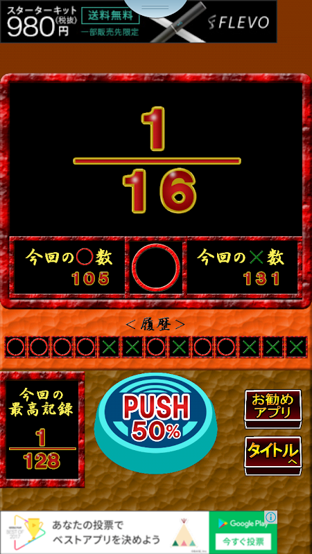 当たり確率1/2のプッシュボタンを押し続けて
