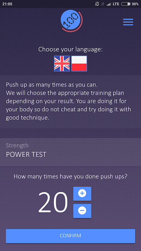 Simple, light and fast training application. At the begining there is test, after that system will get you optimal training. It will remember every data for you. All you need to do is push up!