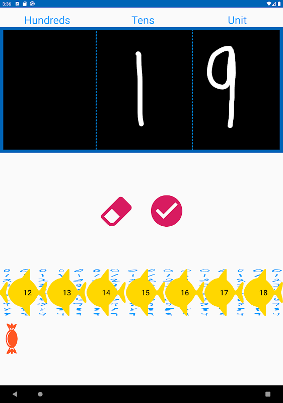 Numprofi is best suited for kindergarten and first grade kids to practice numbers writing from 1 to 999. The blackboard in the application is divided in Ones, Tens and Hundred positions to get better hang of this concept. App's sequential number writing screen in which one has to write in sequence starting with 1 and App gives a candy on every 10 numbers and also cup award for bigger numbers e.g. 50, 100. The Hear and Write Screen of App speaks a number on pressing Play button and one has to write the same number in order to get a happy smiley. The App currently supports English and Deutsch.