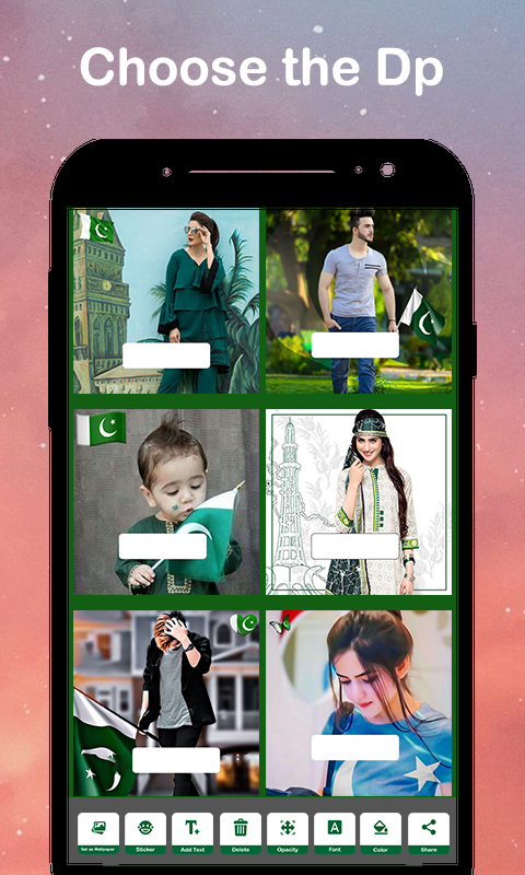 इस 14 अगस्त डीपी निर्माता 2023 ऐप के माध्यम से अपना नाम या स्वतंत्रता से संबंधित जो कुछ भी सीधे आपके दिमाग में आता है उसे लिखकर पाकिस्तान स्वतंत्रता दिवस मनाएं और उन्हें सोशल साइटों पर अपनी स्थिति के रूप में सेट करें और अपने 14 अगस्त प्रोफ़ाइल फोटो या सोशल के प्रति अपने दोस्तों और परिवार का आकर्षण बढ़ाएं। दीवार।