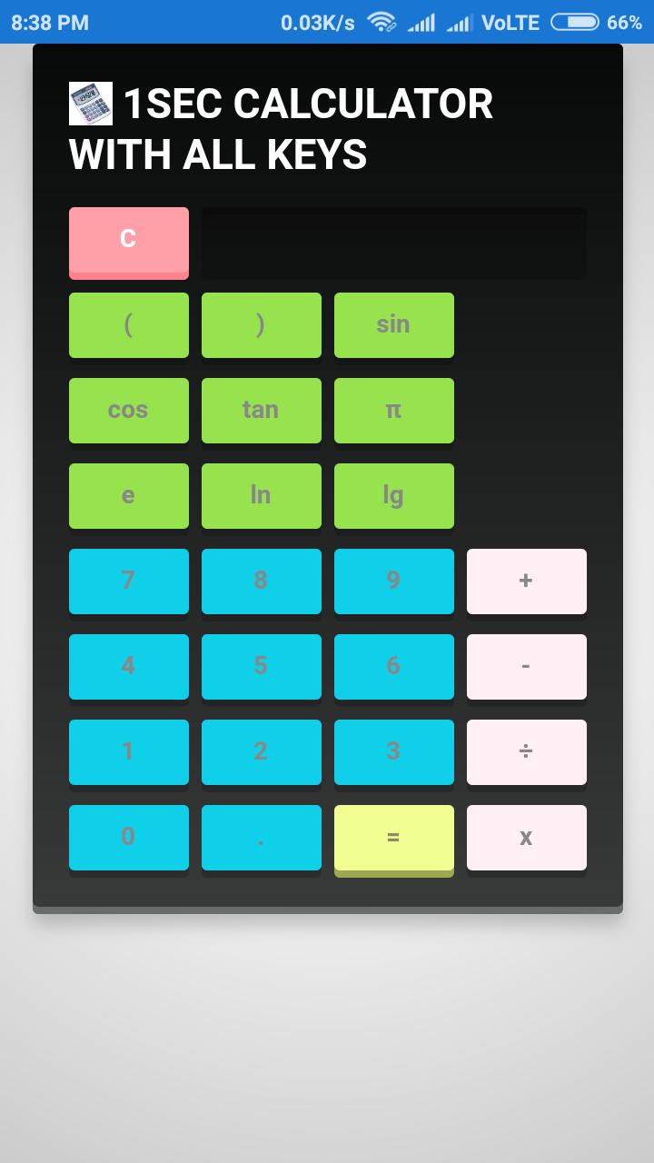 1SEC CALCULATOR WITH ALL KEYS . GET ANSWER IN LESS THAN 1 SEC WITH ALL KEYS .
