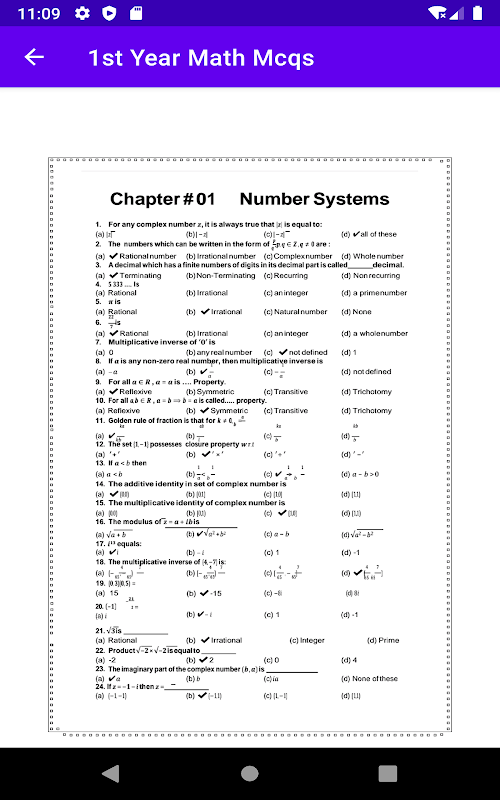 This app contains the Intermediate Mathematics solved mcqs.