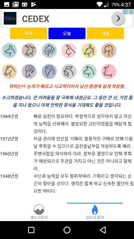 뽕도사님과 길도사님의 오늘, 내일, 주간, 월간 띠별 운세!!! 를 무료로 편하고 간편하고 빠르게 이용하세요~