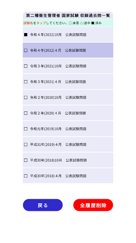 更新時に履歴データが初期化されます。過去問をシャッフルした模擬試験を毎月受け取ることが出来ます。