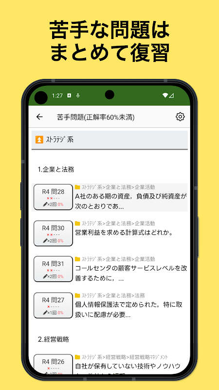 सरल और उपयोग में आसान यूआई: आप आसानी से अपने सीखने के इतिहास की जांच कर सकते हैं और फ़ॉन्ट आकार बदल सकते हैं, और हमने संचालन क्षमता पर विशेष ध्यान दिया है। आप भीड़-भाड़ वाली ट्रेनों में या मांसपेशी प्रशिक्षण के दौरान खाली समय में भी आराम से आईटी पासपोर्ट का अध्ययन कर सकते हैं।