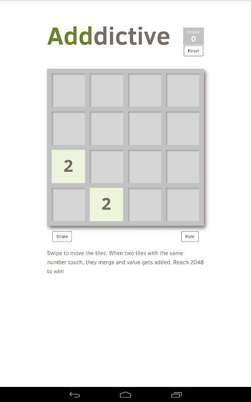 Swipe to move the tiles. When two tiles with the same number touch, they merge and value gets added. Reach 2048 to win!