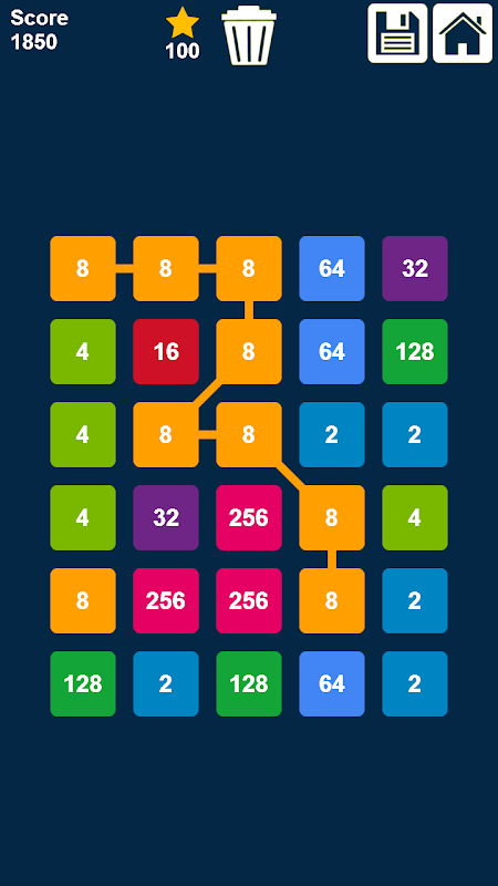 आप क्षैतिज, तिरछे या तिरछे किसी भी दिशा में संख्याओं को जोड़ सकते हैं। जुड़े हुए नंबरों की श्रृंखला जितनी लंबी होगी, उतना ही बड़ा स्कोर मिलेगा। आप पिछले कनेक्ट किए गए नंबरों पर वापस जाकर चयन को पूर्ववत कर सकते हैं।