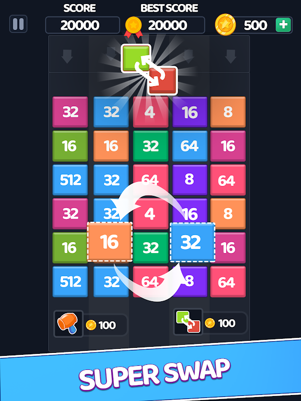 ☑️ दो समान-संख्या वाले ब्लॉक को x2 में मर्ज करें