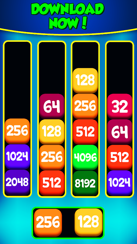 🔢 स्टैक और मर्ज: ट्यूबों पर समान संख्याओं को स्टैक करके और उन्हें बड़ी संख्याओं में मर्ज करके अपने दिमाग को चुनौती दें। लक्ष्य? जीत का दावा करने के लिए मायावी 2048 टाइल तक पहुँचें!