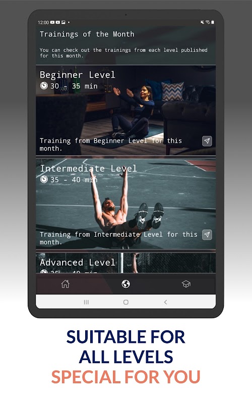 उन्नत में सामान्य शक्ति वाले उच्च-तीव्रता वाले वर्कआउट शामिल हैं और इसमें मासिक योजना के साथ हर 4 सप्ताह में अपडेट किए गए 16 वर्कआउट शामिल हैं।