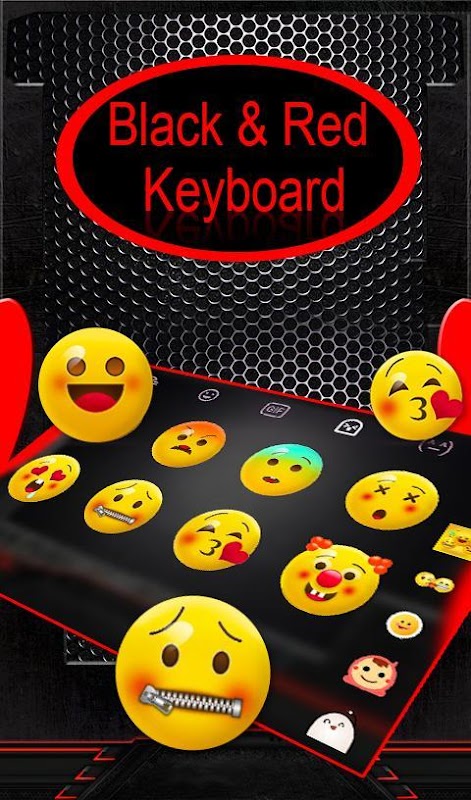 TouchPal इमोजी कीबोर्ड के लिए नि: शुल्क नए 3 डी काले और लाल टेक विषय। टंकण मज़ा!
