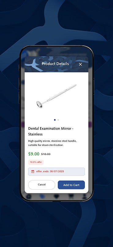 यह दंत चिकित्सकों और पेशेवरों के लिए एकदम सही ऐप है जो प्रतिस्पर्धी कीमतों पर उच्च-गुणवत्ता वाले दंत चिकित्सा उपकरणों और उपकरणों की तलाश में हैं। नैदानिक, शैक्षिक और दंत चिकित्सा उपकरणों की एक विस्तृत श्रृंखला ब्राउज़ करें, जो सभी नवीनतम ऑफ़र और छूट के साथ उपलब्ध हैं। चाहे आपको अपने क्लिनिक के लिए उपकरणों की आवश्यकता हो या व्यक्तिगत उपयोग के लिए, यह एक आसान और सहज खरीदारी अनुभव प्रदान करता है।