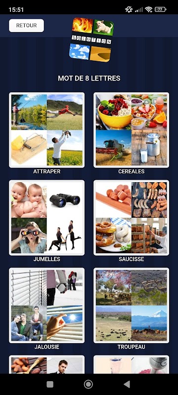 यह गेम मोबाइल एप्लिकेशन की दुनिया में सबसे लोकप्रिय में से एक है। एक सरल लेकिन व्यसनी अवधारणा पर आधारित, इसमें एक ऐसा शब्द ढूंढना शामिल है जो चार छवियों को जोड़ता है। हालाँकि यह आसान लग सकता है, कुछ स्तर विशेष रूप से कठिन हो सकते हैं। हमारे एप्लिकेशन के लिए धन्यवाद, आपको फिर कभी ब्लॉक नहीं किया जाएगा!