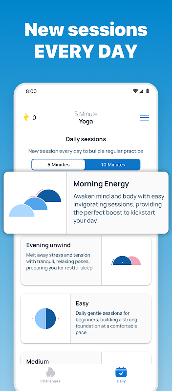 प्रत्येक सत्र सरल लेकिन प्रभावी योगासनों के चयन से तैयार किया गया है, जो इसे शुरुआती लोगों के लिए आदर्श बनाता है। प्रत्येक आसन में स्पष्ट चित्र और विस्तृत निर्देश दिए गए हैं जो यह सुनिश्चित करते हैं कि सभी आसन सही ढंग से किए जाएँ - प्रभावी अभ्यास के लिए आवश्यक।