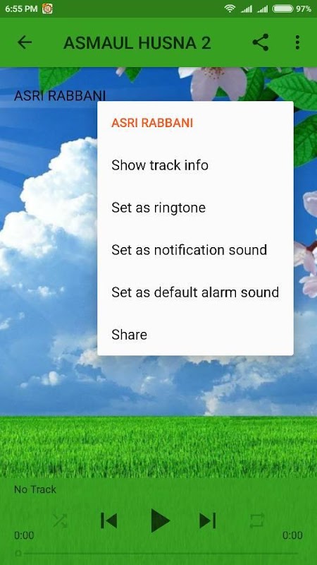 Aplikasi audio ini juga disertakan dengan teks 99 NAMA ALLAH beserta terjemahannya.