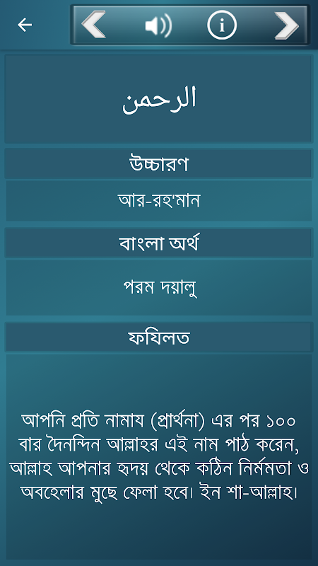 ऑडियो और अर्थ के साथ अल्लाह का अर्थ और 99 नाम के साथ कुरान पढ़ना। (बांग्ला)