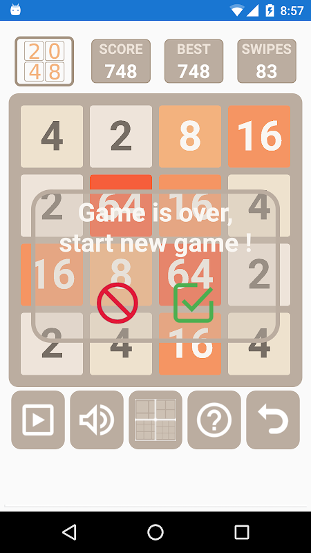 2048 पज़ल को Android के लिए अनुकूलित किया गया है।