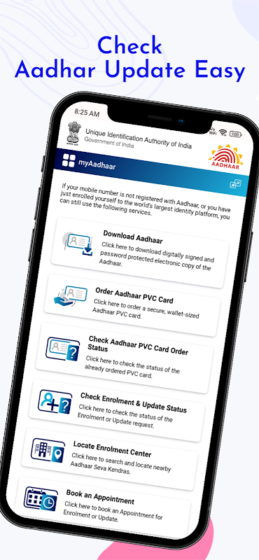 This App you can find enrolment center in your area and check status and after the generation of your aadhar card you can download aadhar card download. You can also update your aadhar card from this app and as well as check its status after the download of your aadhar card pdf file.