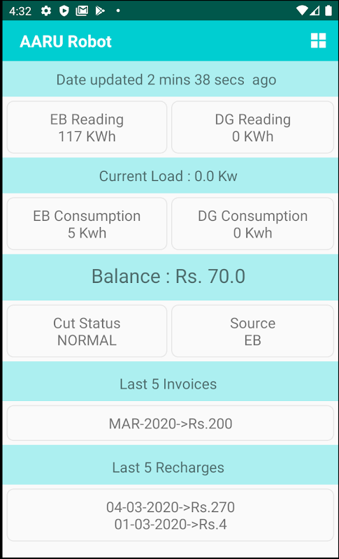 Intents supported : Balance, Current Source, EB and DG Reading and consumption, Cut status, invoice and recharge history etc.