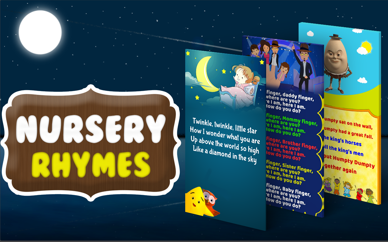 नर्सरी rhymes और फोनेटिक अक्षर के साथ गाते हैं। छवियों के साथ अक्षर ए से ज़ेड के वर्णमाला वर्ण। पूर्व-स्कूली शिक्षा के लिए शब्द, छवियों और उच्चारण के साथ अंग्रेजी वर्णमाला। पूर्व-विद्यालय अपने पसंदीदा नर्सरी rhymes के साथ पढ़, सीख और गा सकते हैं। बच्चों को सीखने वाले अक्षरों के साथ थंबनेल को प्रत्येक कविता के साथ, प्रत्येक कविता के लिए उच्च गुणवत्ता वाले चित्रों को मजेदार तरीके से, बच्चों के लिए उपयोग करने में आसान और मनोरंजन के साथ जोड़ सकते हैं।
