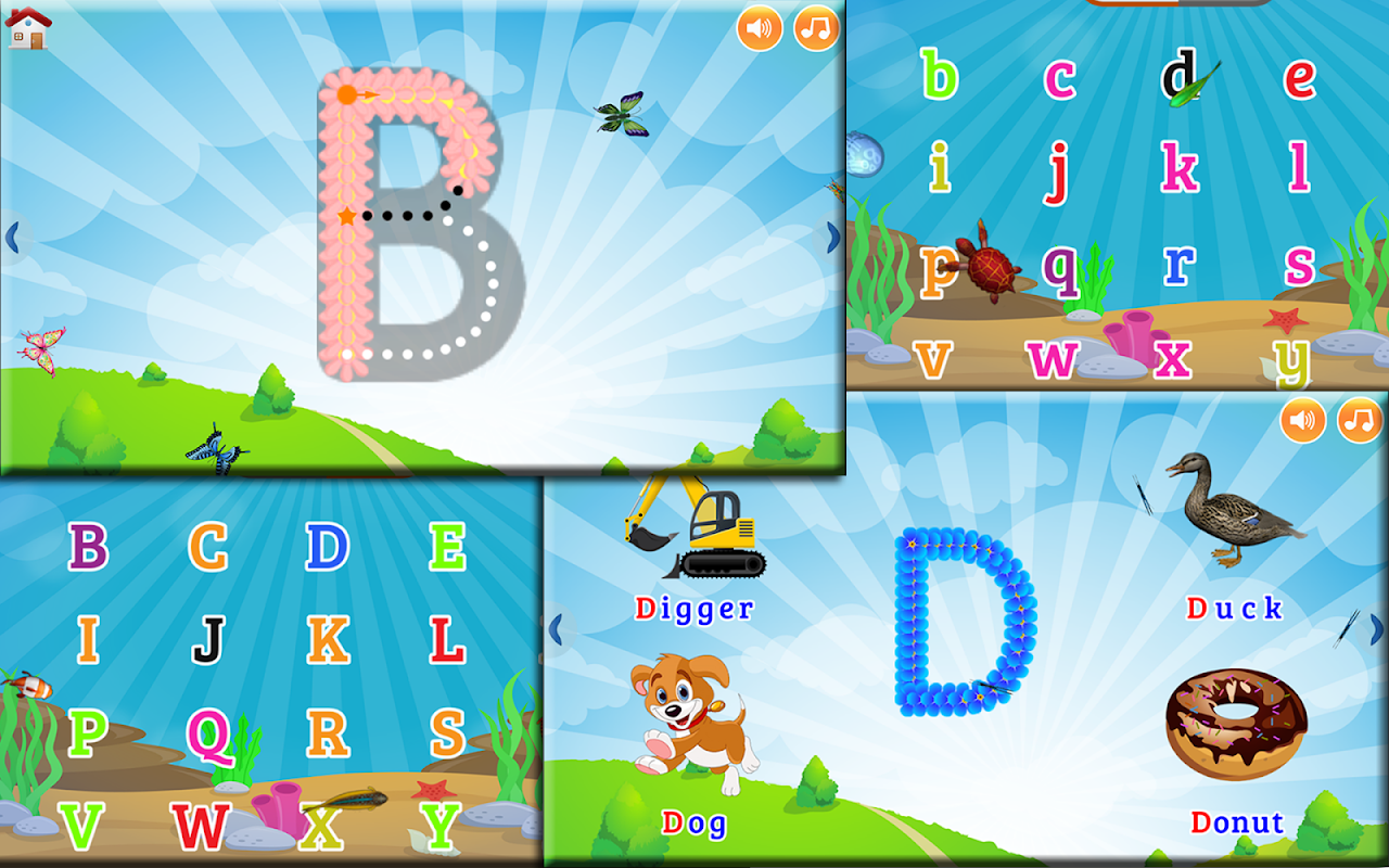 - 8 minigame: letter matching, letter quiz, spelling game, tracing game, bubble pop, memory game and more.