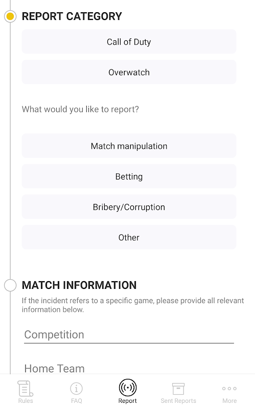 एक्टिवेशन ब्लिज़ार्ड में, हम सभी स्तरों पर सभी लीग और प्रतियोगिताओं में प्रतिस्पर्धा करने के लिए खिलाड़ियों को एक सुरक्षित और मजेदार वातावरण प्रदान करने के लिए दृढ़ हैं। हमारे वफ़ादारी रिपोर्टिंग एप्लिकेशन को बस ऐसा करने के लिए डिज़ाइन किया गया है, जो आपको रिपोर्ट करने के लिए एक मंच प्रदान करता है - सुरक्षित रूप से और सुरक्षित रूप से - कोई भी संभावित दृष्टिकोण जो प्रतिस्पर्धा की अखंडता को खतरे में डालता है। मैच हेरफेर से लेकर रिश्वत और भ्रष्टाचार तक, एप्लिकेशन को सही प्रतिस्पर्धी प्रौद्योगिकी के साथ खिलाड़ियों को लैस करने के लिए डिज़ाइन किया गया है जो सीधे जिम्मेदार हितधारकों को महत्वपूर्ण जानकारी प्रदान करते हैं जो हमारे सभी प्रतिस्पर्धी लीगों में निष्पक्ष खेल की रक्षा करते हैं।