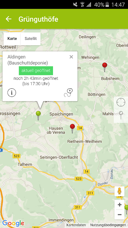 अनुप्रयोग के बारे में बाकी सब कुछ, यात्रा http://www.abfallplus.de/app/