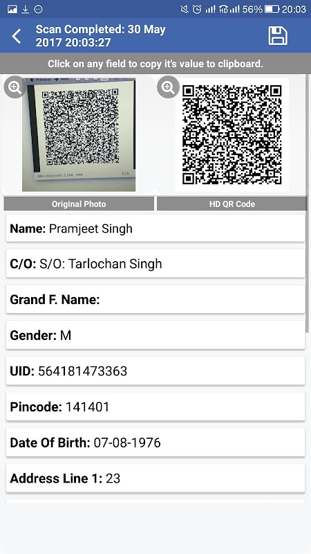 Scan your aadhaar QR code and see what details are encoded within the QR Code.