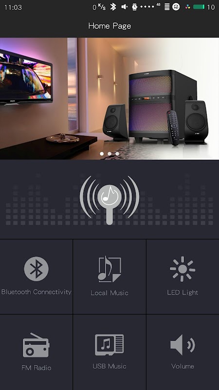 Smart Bluetooth speaker App terminal,App Bluetooth connection device, you can control the speakers to play music on the phone, and USB music, using APP to control the light on the device color, control FM radio.