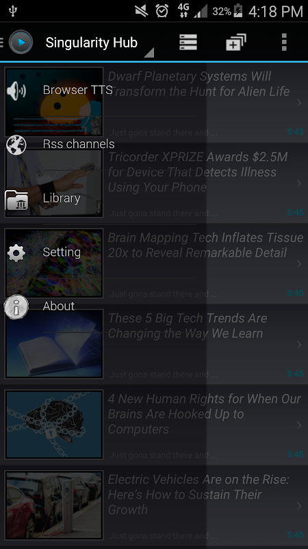 Allow the Text to Speech Technology (TTS) read for you, all the information you want from your favorites websites on the go, while you are on your way, driving, walking, or even having a shower! You can also control this App using the headphone remote control.