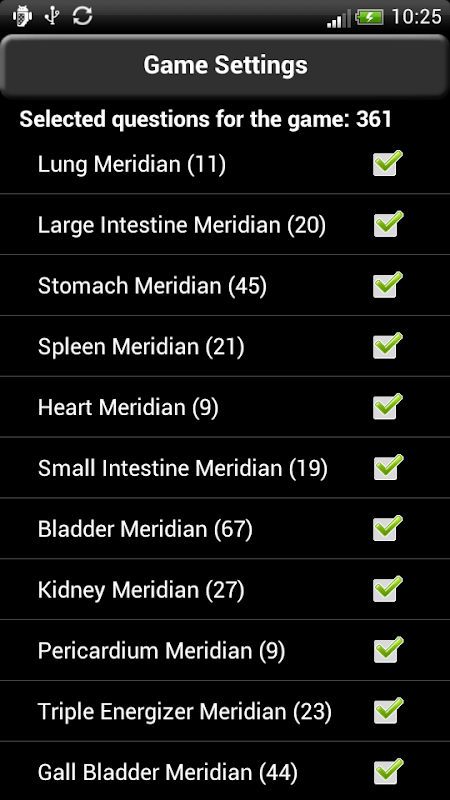 प्रत्येक प्रश्न के 4 संभावित उत्तर हैं। जब आप किसी एक उत्तर को टैप करते हैं, तो दबाए गए बटन का डिफ़ॉल्ट रंग थोड़ी देर के लिए बदल जाता है (जब यह सही उत्तर था) या लाल (गलत उत्तर)। आपके पास सही उत्तर देने के लिए 3 प्रयास हैं। यदि आप इसे पहले प्रयास में देते हैं तो आपको 3 अंक प्राप्त होंगे, दूसरे प्रयास में - 2 अंक, तीसरे पर - 1 अंक। एक्यूपंक्चर बिंदुओं के अपने ज्ञान का परीक्षण और सुधार करने के लिए अब "एक्यूपंक्चर पॉइंट्स क्विज़" खेलें!
