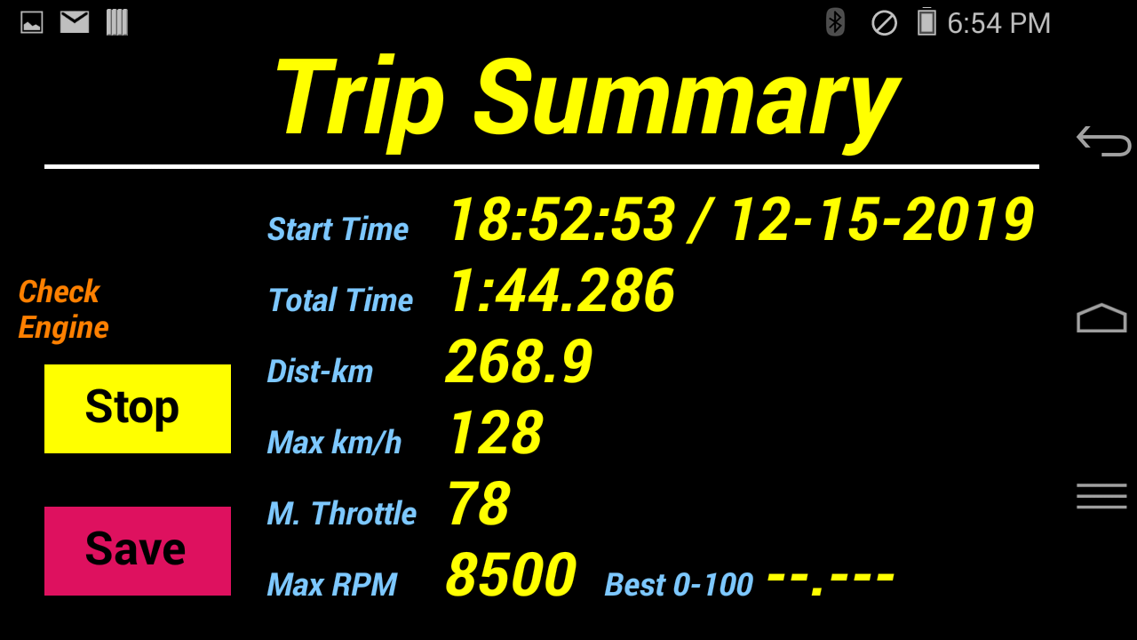 - मुझे व्यक्तिगत रूप से लगता है कि यात्रा का समय समारोह एक उत्साही रविवार सुबह ड्राइव के लिए काफी उपयोगी है। और यह अधिकतम RPM, अधिकतम गति ... को भी लॉग करता है।