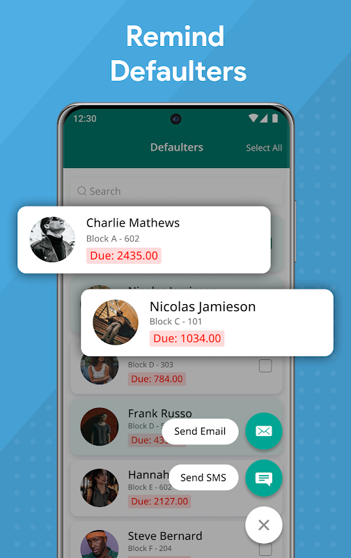 * भुगतान अनुवर्ती - आप उन सभी मालिकों/किरायेदारों को देख सकते हैं जिनके सामुदायिक बकाया लंबित हैं और लंबित बकाया राशि की राशि। आप इन सदस्यों को अनुस्मारक भेज सकते हैं।