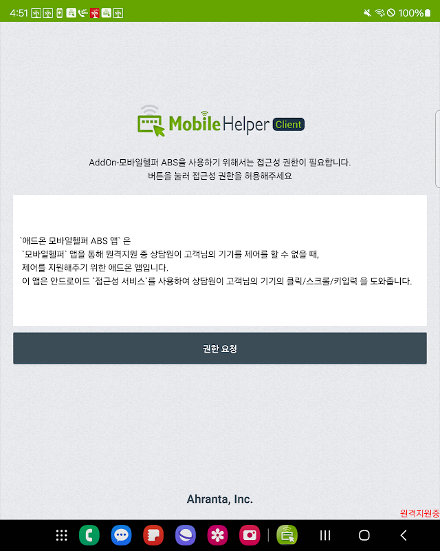 ऐडऑन-मोबाइल हेल्पर एबीएस ऐप एक ऐड-ऑन ऐप है जो पीसी से मोबाइल या मोबाइल से मोबाइल के नियंत्रण का समर्थन करता है जब एजेंट 'मोबाइल हेल्पर' ऐप के माध्यम से रिमोट सपोर्ट के दौरान ग्राहक के डिवाइस को नियंत्रित नहीं कर सकता है।