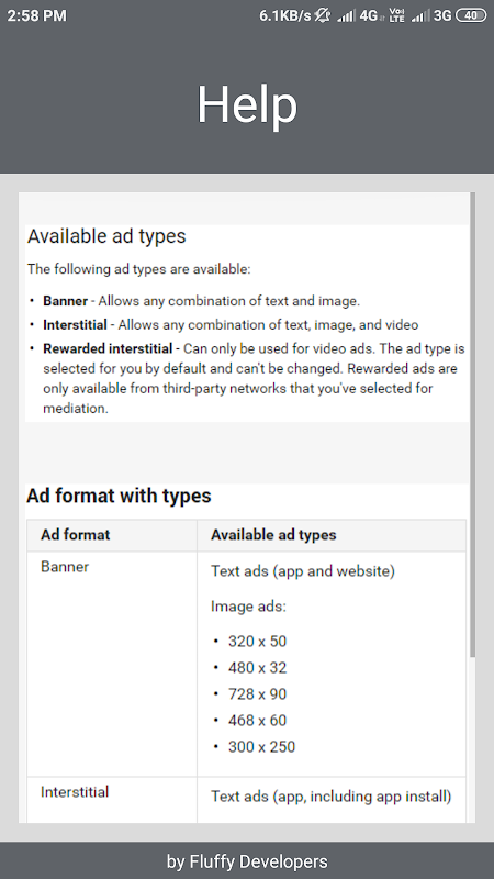 AdMob वर्तमान में विज्ञापन इकाइयों के प्रकार प्रदान करता है। आप अपने ऐप मापदंड के आधार पर विज्ञापन प्रारूप चुन सकते हैं।