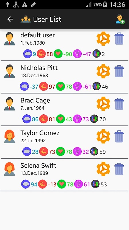 आज के Biorhythm उन में से प्रत्येक के लिए, उपयोगकर्ता सूची में सीधे देखें।