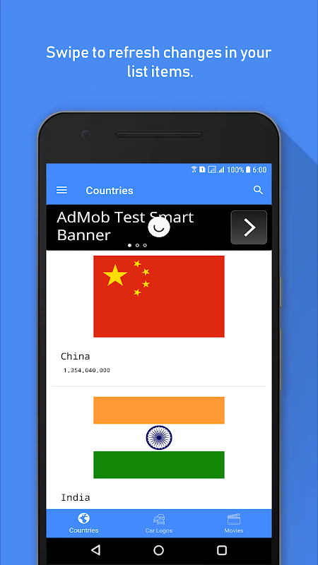 उन्नत RecyclerView अनुप्रयोग विशेषताएं मूल निवासी विज्ञापन, SearchView, SwipeRefresh और अधिक!